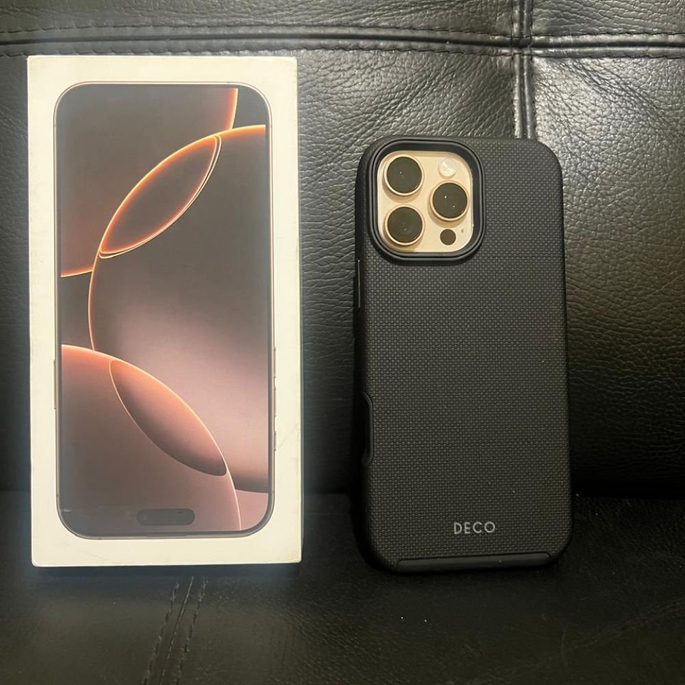 iPhone 16 Pro Max com 1 TB de armazenamento, pouquíssimo tempo de uso com capa e película de vidro, caixa original com cabo e fonte. Bateria em ótimo estado, sem travamentos ou defeitos